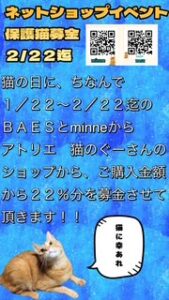 2月22日猫の日 BASE・minnneの売上から22%を保護猫募金へ